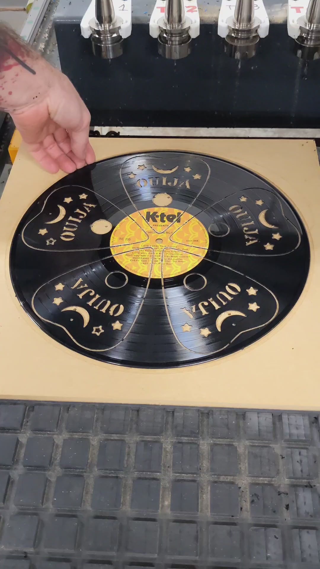 Laissez-vous inspirer par la sagesse des esprits avec cette planchette Ouija fabriquée à partir d'un vieux disque vinyle délaissé.